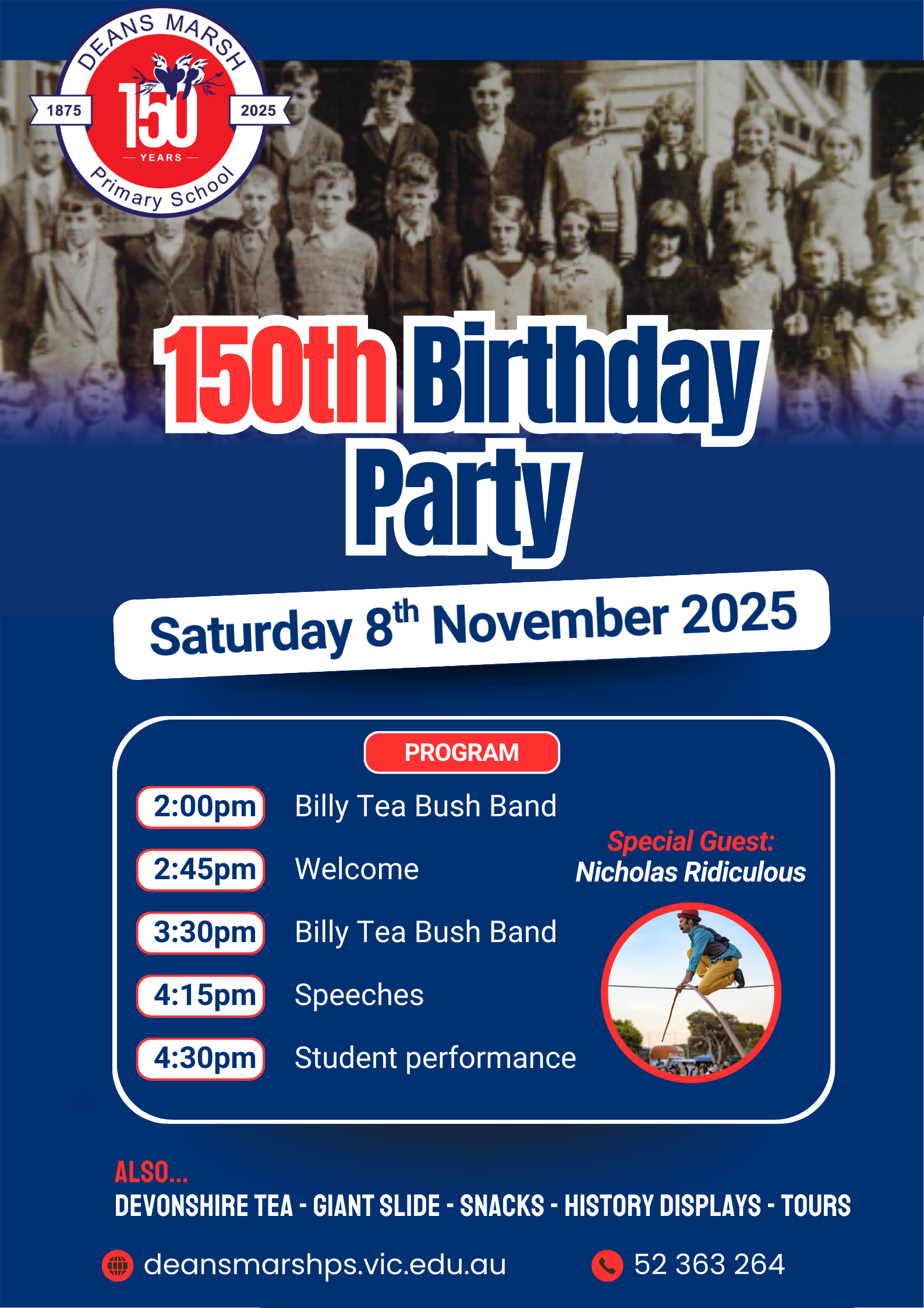 Come along and help us celebrate Deans Marsh Primary School turning 150!